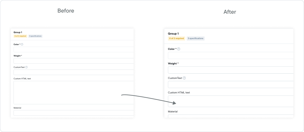 Specifications now include tooltips that display the specification description. This gives your team clear guidance on how each field should be used.